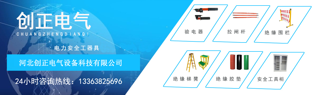 河北創(chuàng)正電氣設備科技有限公司主要經營產品包括:高壓驗電器、高壓接地線、高壓拉閘桿、絕緣橡膠墊、絕緣伸縮圍欄、絕緣梯、安全工具柜、絕緣凳、擋鼠板、安全警示帶、絕緣臺、安全帶、腳扣、安全帽、標識牌、絕緣手套、絕緣靴等電力安全工器具。公司以“服務電力系統,努力永無止境”為目標,以“人才就是生產力”為戰(zhàn)略,以經驗為依托,以理念為指導,以員工為基礎,以市場為支撐,貫徹“以顧客需求為上”的經營理念,以合格的質量,合理的價位,適應市場的需求。